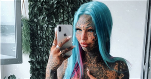 The model has more than 600 inkings, which include a horned woman on her body and skulls on her torso.