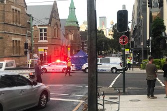 Real-world tragedy: a food delivery rider died following a collision on this intersection in Sydney in November 2020.Credit:Nick Bonyhady
