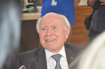 John Howard was in Perth to support Liberal candidates on day one of the election campaign.Credit:Kate Geldart