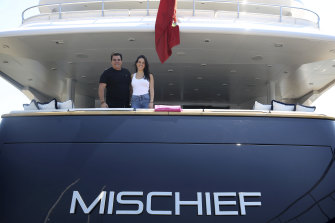 Ian Malouf and daugther Ellie aboard Mischeif. Credit:James Alcock