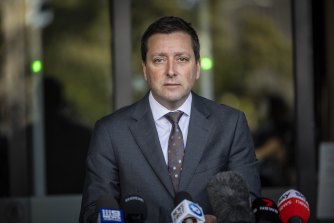 Matthew Guy addresses the media on Tuesday morning.Credit:Wayne Taylor
