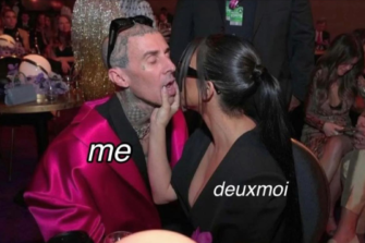 A meme of Kourtney Kardashian and Travis Barker from celebrity gossip Instagram account DeuxMoi.Credit:@deuxmoi