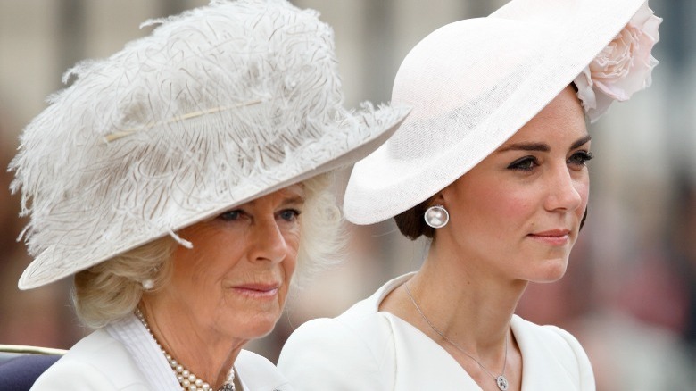 A year later, Kate and Camilla attended the Order of the Garter along with other royals. At one point, Kate was having a lively conversation with Queen Letizia of Spain, while Camilla stood nearby with her back turned to them. Then, when Camilla turned around and tried to join in the conversation, she was left hanging for a few moments as the two younger royals appeared to ignored her (via the Mirror). Awkward.