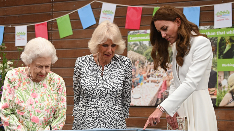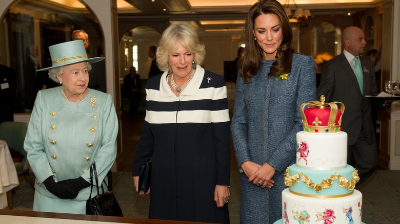 Kate and Camilla also displayed their close relationship by working side by side, along with the queen, at a party promoting the Big Lunch program and its involvement with the queen’s Platinum Jubilee (via People). The festivities included a large cake, so we’re betting Kate and Camilla enjoyed a slice or two together.