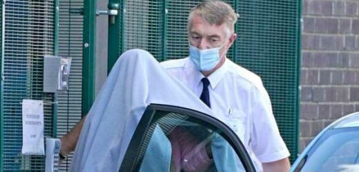 The 43-year-old was could be seen being covered by a blanket as she left the Crawley court, and she was snapped getting into a blue car before being driven away.