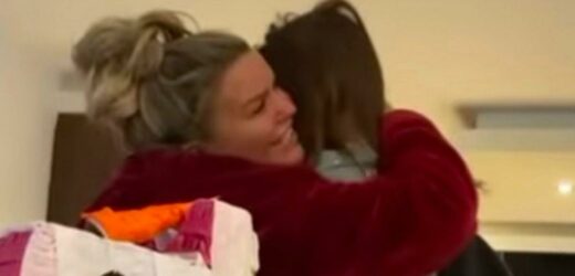 In a second video the girl is still hugging her as Kerry's boyfriend Ryan Mahoney lifts her up, with the mum expressing her joy through a cheer as DJ begins to cry.