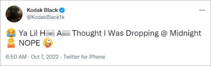 On Friday, October 7, the “Super Gremlin” hitmaker turned to Twitter to tell his fans and followers that he postponed the release of his new music which was originally scheduled to be released at midnight. “[laughing with tears emoji] Ya Lil H*e A** Thought I Was Dropping @ Midnight. NOPE [grinning face with smiling eyes emoji).”
