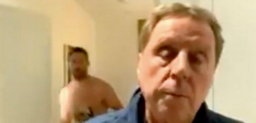 Harry Redknapp’s live interview was crashed by son Jamie strolling around in the background topless – with cameras capturing it all.