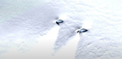 A conspiracy theorist has spotted two identical metallic UFOs "twice the size of an F-16 jet" resting on the snow in the Antarctica mountains.
