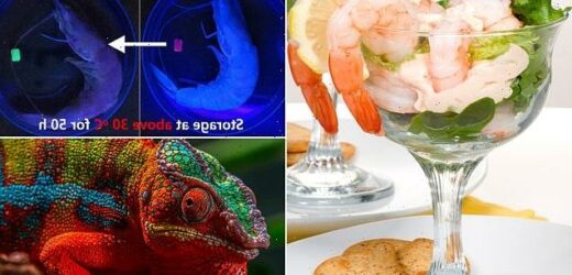 Time to bin those prawns? Scientists develop artificial colour-changing material that mimics chameleon skin and can detect if seafood has gone off