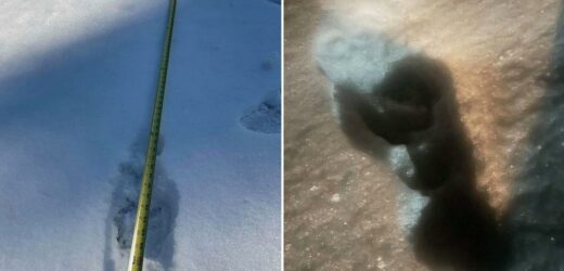 Ryan shared images of what he found, showing unusually large footprints in the snow which were positioned much too far apart to have been made by a human.