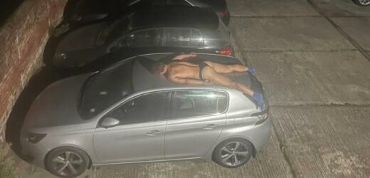 A resident in a sleepy seaside town was shocked to find a drunk bloke, half-naked and asleep on the roof of a parked car.