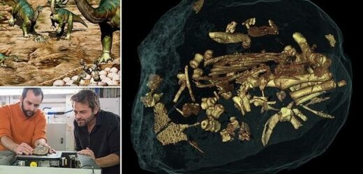 Scans show the eggs all belong to the same species – a primitive long necked herbivore called Mussaurus patagonicus, explained the team of palaeontologists from the Massachusetts Institute of Technology in Cambridge, Massachusetts