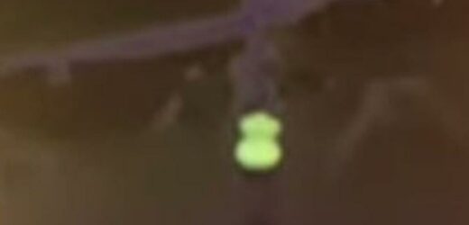 Two fluorescent green orbs can be seen moving around the locked beer garden and it illuminates a human-like shadow walking around.