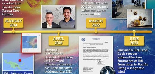 NASA says IM1 almost certainly came from outer space – making it Earth’s first known interstellar visitor – and crashed into the ocean in 2014, but it was only detected by Professor Loeb and Harvard researcher Amir Siraj in a retrospective analysis.