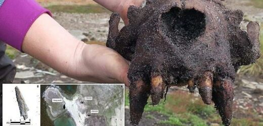 Sea lion bones (pictured: a male sea lion skull) were found at New Island, the study added