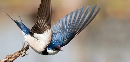 Swallows dart and glide, often low to the ground or at treetop height, and tweet or chirrup from perches.