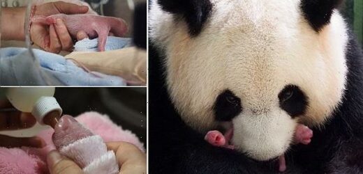 Giant panda on loan to French zoo from China gives birth to twins that ‘are very lively, pink and plump’