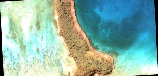 The uniquely-shaped island stretches more than 500m and is part of the Trinity Islands off the coast of New Caledonia, Oceania.