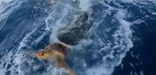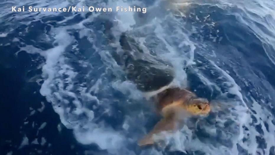 Fishermen rescue sea turtle from jaws of tiger shark, wild video shows