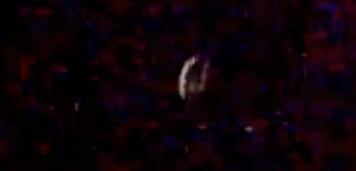 On the left side of the frame, a hemisphere-shaped UFO appears for a brief few seconds and shows what looks like an "arc" before disappearing in the dark again.