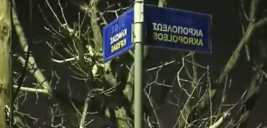 In a video posted by a member of the Residents Union of Meteora, he heads out to the junction of Kifissias and Acropolis streets where he hears a continuous, paced rhythm of loud thumps.