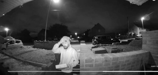 In the video, the man, dressed in a beanie hat and hoodie and holding a box of cereal which appears to be Crunchy Nut Corn Flakes, walks up to the house and rings the bell. An automated voice from the security doorbell system then responds by saying “please wait, it may take me a moment to answer”.