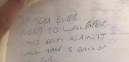 The note said: “If you ever need to wallpaper this room again, it will take 8 rolls of wallpaper.