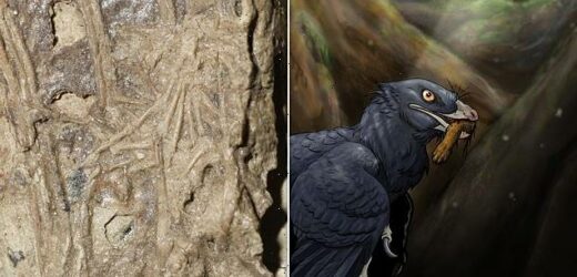 Dino-mite find! Microraptor died 120 million years ago with the FOOT of a small animal lodged in its ribcage – marking the first record of a dinosaur eating a mammal