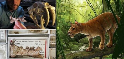 Terrifying sabre-toothed mammal with huge upper teeth specialised for slicing FLESH roamed California 40 million years ago, fossil analysis reveals