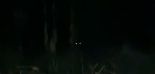 In the clip, the bloke recording the eyes lurking in the shadows says: "We've got it. He's looking at us right there. You see it? Oh, wait. That's not a deer. What the devil is that?