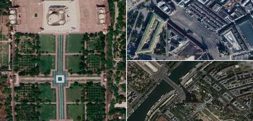 How many can YOU guess? Satellite images show iconic landmarks from above – so do you know the Eiffel from the Blackpool Tower?