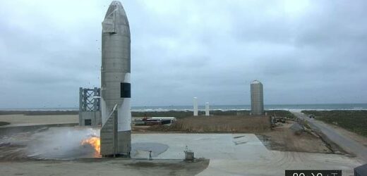 SN15’s Raptor engines reignited as the vehicle attempted a landing flip maneuver immediately before touching down on the landing pad adjacent to the launch mount, shut down its Raptor Engines and stood tall on the pad. Musk aims to use Starship testing to finalize the final rockets to take humans to Mars, however his company has yet to see one survive the first test flight on Earth (pictured is an image of the rocket performing the flip maneuver)