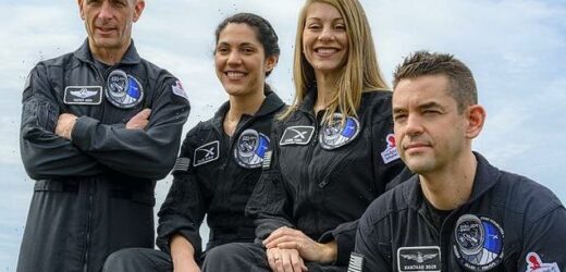 The Polaris crew are, from left, Tech entrepreneur Jared Isaacman, SpaceX employees Anna Menon and Sarah Gillis and Scott Poteet, a retired Air Force lieutenant colonel