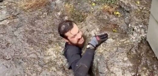 Over two million viewers got 'stressed out' watching a spelunker force himself into a painfully narrow cave opening.