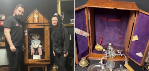 Kymmi Jeffrey, 38, and JP Kenny, 33, were trying to make contact with the spirit world when they claim a metal cross on an exorcism box was snapped.
