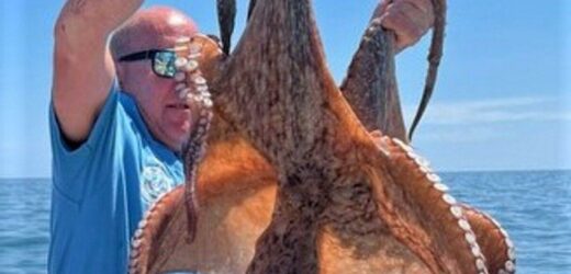 Chris Rushton was on board the Charter vessel Anna III when he came across the bizarre find three miles off the coast of Jersey. The Wiltshire-based fisherman latched onto the huge 18lbs common octopus when travelling past Corbière for a work trip, “wowing” everyone as it was hauled on board. Tony Heart, the skipper aboard the Anna III, said: “It took quite an effort to bring it to the top as it was like a dead weight at 18lb, which is one of the largest of its species.