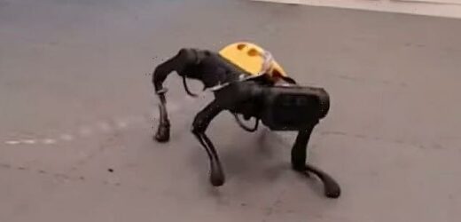 In a video released by researchers, the 4-legged robot is at first seen flailing its legs in the air and struggling – but after just 10 minutes it can take steps – and by the one hour mark it’s walking quite easily, rolling off of its back and even navigating being knocked over with a stick by one of the researchers.
