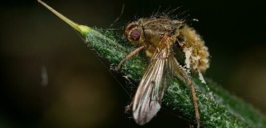 The fungi can even hijack the insects’ brains — forcing them to land on a surface and crawl upwards to give the parasite a better shot at spreading.