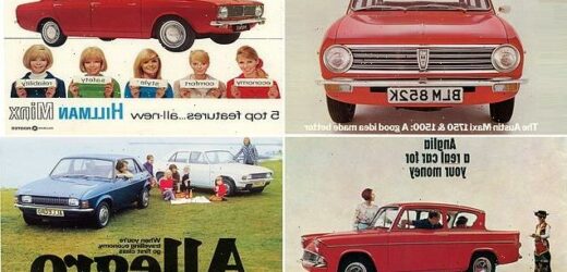 The stars of his book include the Austin Allegro (the ‘flying pig’), the Ford Anglia (aka The Harry Potter Car), the Austin Maxi and the Morris Marina (‘beauty with brains’), as they appeared in glossy car dealer brochures