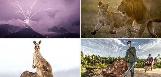 Orangutans in a wheelbarrow, spectacular lightning and lions bonding on the savanna: The stunning winning images in a prestigious nature photography competition revealed