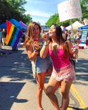 Jamie Park offered up free kisses at Lansing Pride, which she attended with her friend Brooke Hansen in 2018. (Photo: Jamie Park)