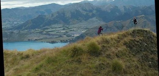 The comedian approaches a couple taking photos at Roys Peak — a popular place for tourists to snap an Instagram picture — and asks them to stop.