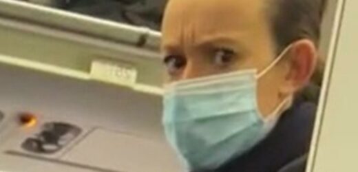 In the video, Amber was unfolding the stool and locking it in place – but in the background a flight attendant was staring at her looking shocked.