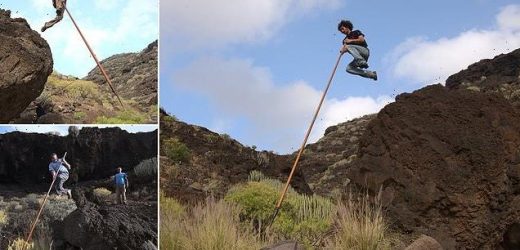 Not for the sheepish: The daring Canary Islands folk sport known as the ‘shepherd’s leap’, with enthusiasts pole-jumping down sharp cliffs and rocky terrain