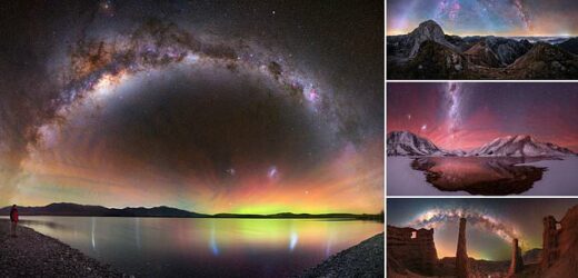 This 360-degree time-blended panorama, captured in Bulgaria, shows us what the night sky would look like if we could see two Milky Way arches side by side, photographer Mihail Minkov reveals. He says: ‘This is practically impossible since they are part of a whole and are visible at different times of the day.’ The photographer continues: ‘The two arches of the Milky Way represent one object in the starry sky, with part of it visible in winter and part of it in summer. Therefore, they are called the winter and summer arches. The winter arch includes objects that we can observe from October to March, primarily associated with the constellation Orion. On the other hand, the summer arch features the Milky Way core, visible from March to September, which is the most characteristic and luminous part of the night sky, representing the centre of our galaxy’