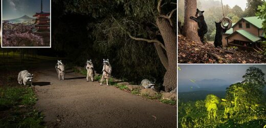 Each year, the prestigious contest, which receives entries from across the globe, runs several competitions, including the professional contest and the open competition. Standout images include a photo of a forest in India lit up in spellbinding fashion by fireflies, a hypnotic image of raccoons on the prowl in San Francisco, a breathtaking image of an Alpine meadow in Italy and a picture that shows the Milky Way framing Chureito Pagoda, a pagoda that overlooks the Japanese city of Fujiyoshida and faces Mount Fuji.