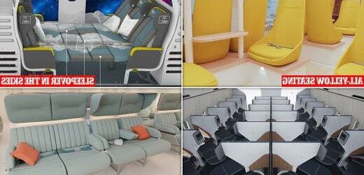 Commenting on the finalists, the organisers of the annual competition say: ‘As the shortlist for the 2022 edition shows, manufacturers, academia and individuals around the world are continually innovating towards reducing the environmental impact of aviation while offering new solutions to give airlines more flexibility in configuring the aircraft cabin for their customers.’ The official winners will be revealed at the Aircraft Interiors Expo in Hamburg on June 14. Scroll down for MailOnline Travel’s pick of the shortlisted entries…