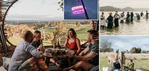 From a dinner table suspended 164ft above the ground to an oyster ‘restaurant’… in knee-deep water: Australia’s most weird and wonderful foodie experiences revealed