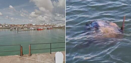 Fish out of tropical water! 11ft Ocean Sunfish is filmed in harbour of Kent seaside town… 8,000 miles from its home in the warmer seas off CHILE